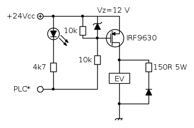 IsidoroKZ ha scritto:Fra gate e PLC devi mettere una resistenza altrimenti fai fuori zener e MOS.