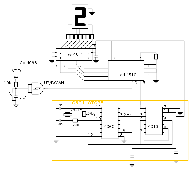 Il primo schema postato è per l'UP-DOWN, l'ultimo è l'oscillatore che puoi fare con il 4093 (ma li osservi gli schemi ?).