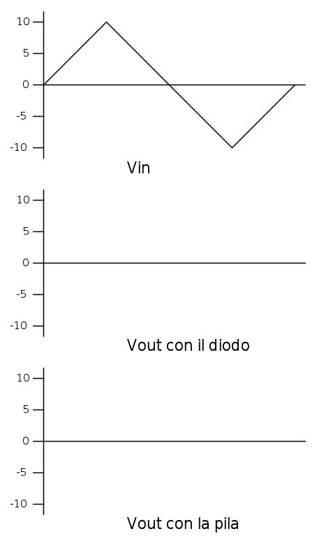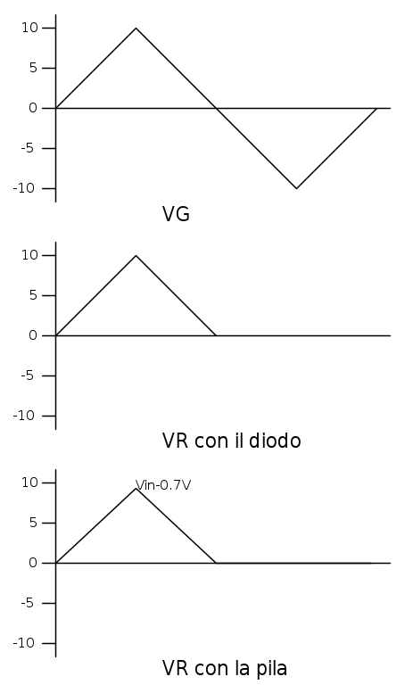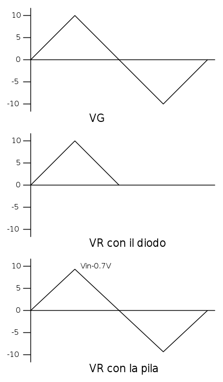 Nel circuito in questione non abbiamo due batterie in serie ma abbiamo un generatore di tensione alternata con una forma d'onda triangolare in serie ad una pila...in fondo, però, non è poi così diverso: devi considerare il generatore come fosse una pila la cui tensione, istante per istante, cambia valore diventando anche negativa...quindi, istante per istante, è come se vi fossero due pile in serie, quindi?...