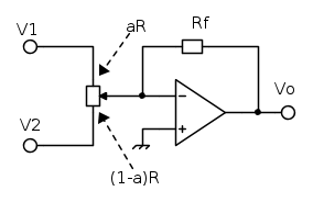 ![V_o=A\left[\left(1-a\right)V_1+aV_2\right] V_o=A\left[\left(1-a\right)V_1+aV_2\right]](/forum/latexrender/pictures/12b3cd4281224a0d49f37a915f80754d.png)