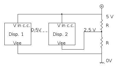 1: Stai dando in ingresso al dispositivo di destra una tensione maggiore di quella della sua alimentazione, dato che tra il terminale di alimentazione positiva e Vee ci sono 2.5 V.