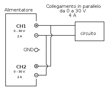 In definitiva le cose vanno come se all'interno dell'alimentatore vi fossero due batterie collegate rispettivamente l'una alla coppia di boccole + e - di sinistra e l'altra alla coppia di boccole + e - di destra, quindi, in prima battuta, ai fini del funzionamento non serve altro.