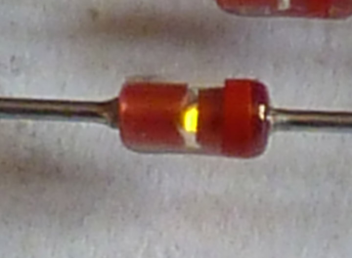 Mah, a me sembrano giusto diodi led arancioni.. impachettati in maniera insolita che è forse il motivo per cui li tirano dietro alle fiere (è probabile che fossero previsti per essere usati non come diodi da pannello ma come diodi di riferimento per generatori di corrente, quindi montati su PCB come normali diodi di segnale e simili). La Vf più o meno conferma la mia impressione...