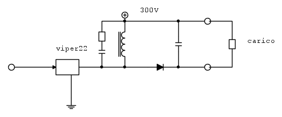 ecco uno schema di massima di come ho usato il viper per un circuito, configurazione buck/boost, come carico per ora ci alimento una serie di 50 led SMD che complessivaente raggiungono i 160/180V, corrente 20mA.