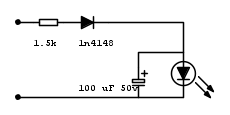il condensatore e il diodo servono a raddrizzare e livellare per quel poco che basta per non farlo fibrillare, se invece di 1.5k adoperi una resistenza da 1.8 oppure 2.2 kohm hai risolto il problema dell'assorbimento. Io non ho studiato elettronica quindi sono più pratico che teorico e tendo a metter su un circuito testandolo in loco. Provando le diverse opportunità capirai quale idea e la migliore, visto che il circuito a pochi componenti non sarà difficile testare più circuiti.