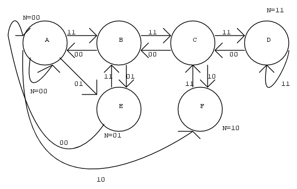 il passaggio da uno stato al successivo avviene con ingressi 00 o 11