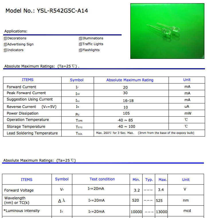 1enry, nella maggior parte dei casi la tensione è strettamente legata al colore, ma IN OGNI CASO quello che conta di più, specie in assenza di data sheet, è la corrente dichiarata.