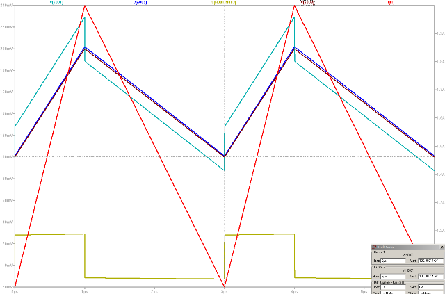 Con i valori di resistenza dello schema si vede che la stima dell'induttanza fatta e` dalle parti di 27nH e quindi il condensatore viene da 27pF.