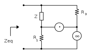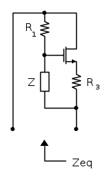 Se considero la gm del MOS come infinita, ottengo questo circuito equivalente: