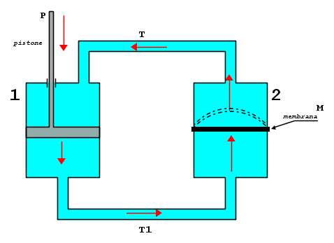 Qualora la pressione del pistone P dovesse superare il limite di elasticità della membrana M si otterrebbe la rottura di quest’ultima, come si otterrebbe il fenomeno della scarica distruttiva di un ipotetico dielettrico.