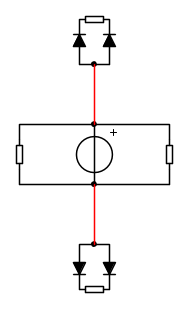 I collegamenti in rosso per la corrente sono vicoli ciechi... di lì non può passare