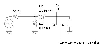Mmm, in questo caso con una rapida occhiata alla carta di Smith dovrebbe essere possibile l'adattamento con 2 induttori, ma non quadra il discorso dell'adattamento per il massimo guadagno (almeno con il coefficiente di riflessione dato), che si deve avere nel caso in cui \Gamma_S = \Gamma_\text{in}^*, come appunto commenta Foto UtenteMarkyMark.