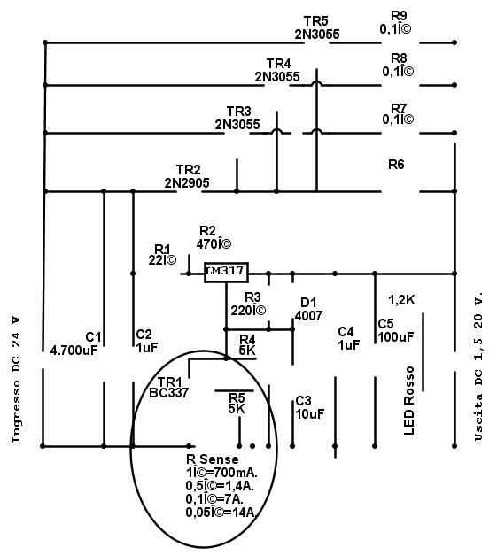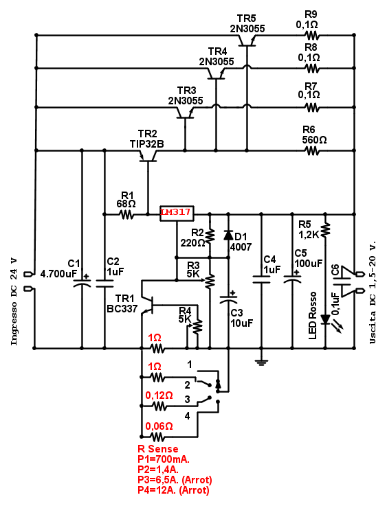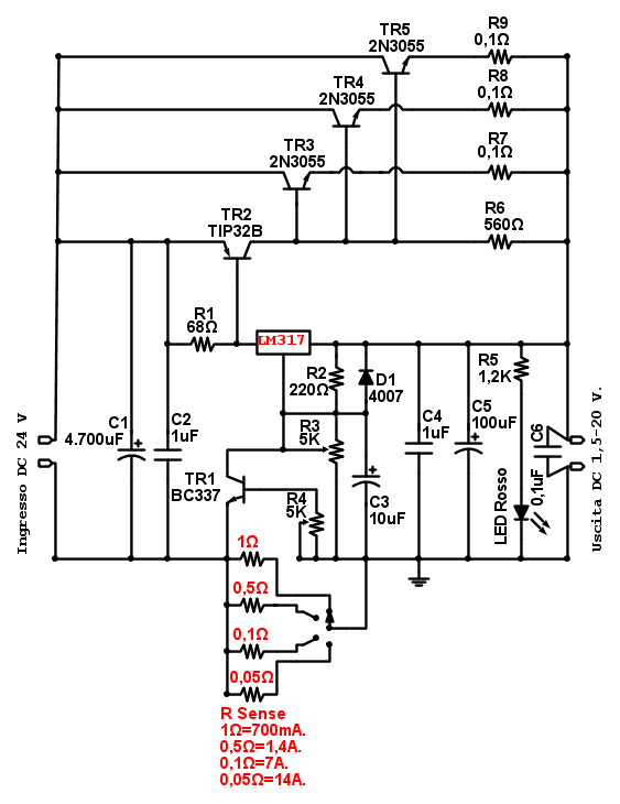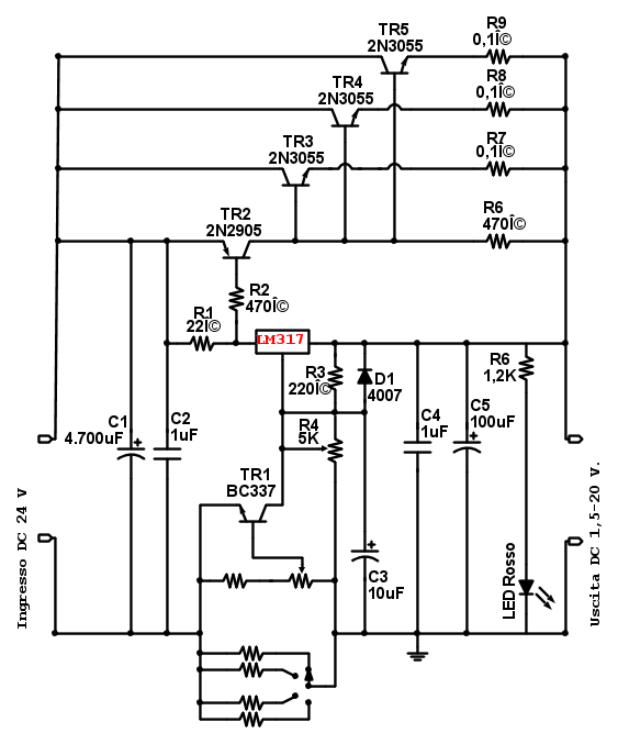 Regolare la corrente ad un alimentatore con LM317