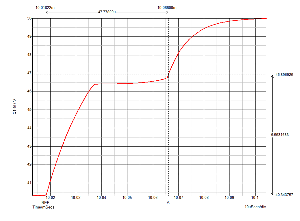 AccensioneSpegnimentoCome vedi lo spegnimento impiega 50 us (da comando a fine Miller), diciamo che non andrei a più di 10 kHz.