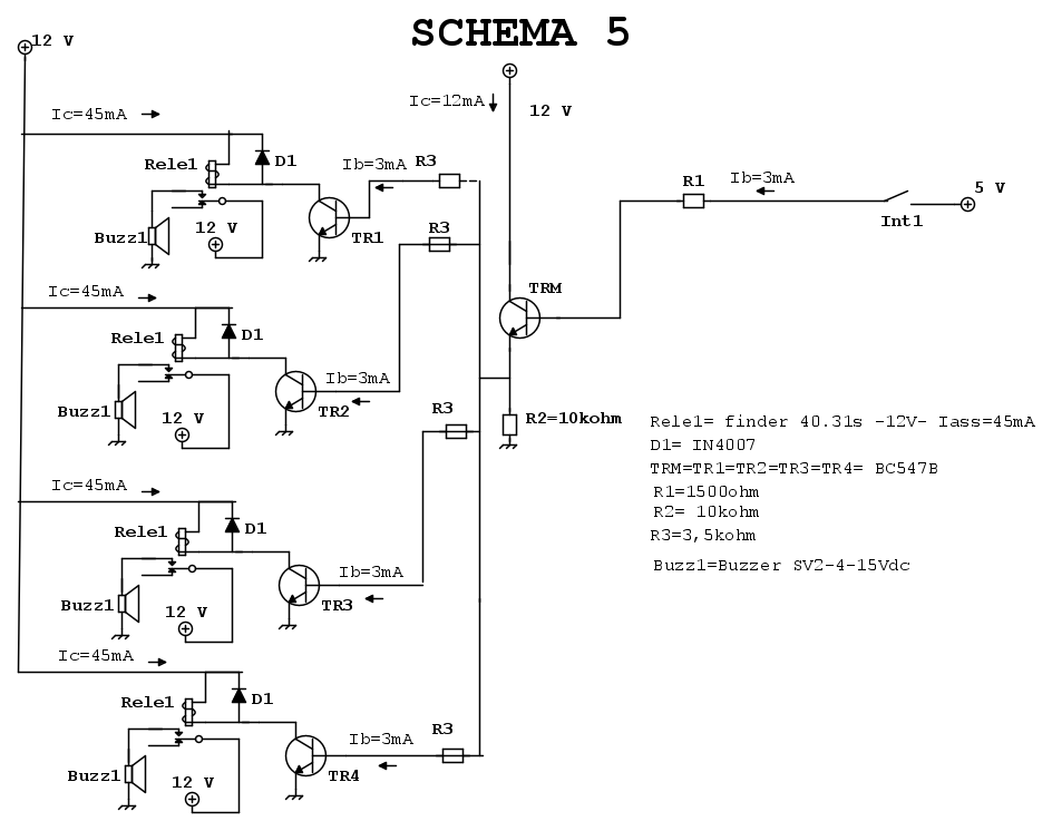 djnz ha scritto:Lo schema giusto è un mix tra il 3 (comando dall'emettitore di TRM e R2 da 10kΩ) ma con le resistenze sulle basi di TR1..4 (come schema 4) ma da 1,5kΩ.