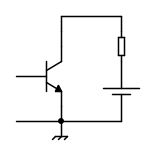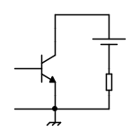 il carico e la tensione di alimentazione (rappresentata con il simbolo della batteria) sono collegati in serie, quindi il transistor non si accorge se sono scambiati di posto.