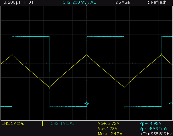 EDIT: scorrendo il sito dal quale ho preso l’immagine c’è una foto fatta all’oscilloscopio di come viene fuori l’onda triangolare. Avevo ottenuto risultati simili. Per me che sono nato in epoca analogica e ho fatto il mio primo oscillatore onda quadra/triangolare con due operazionali quell’affare mi sembrava tutto tranne che un’onda triangolare
