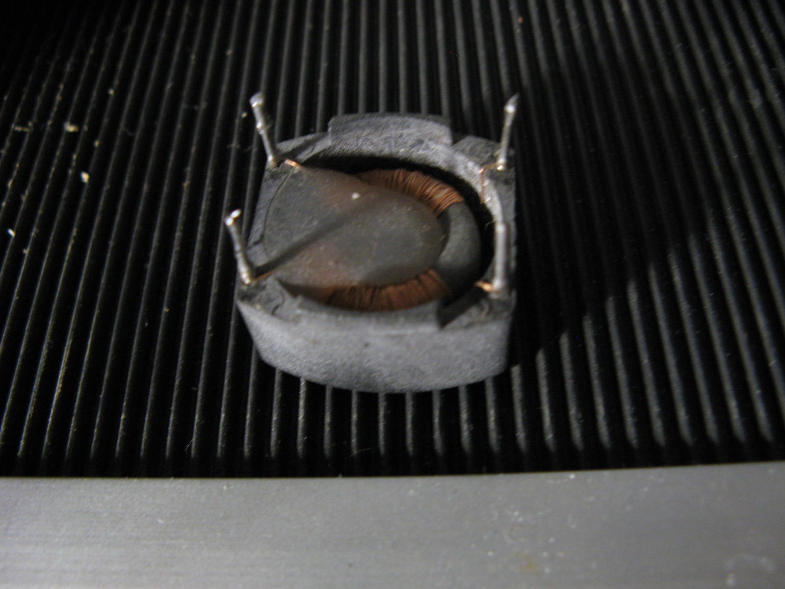 (foto 10) Ho preso nel cassetto delle cianfrusaglie elettroniche un vecchio filtro di rete di cui non conosco nessuna caratteristica. L'unica cosa che so è che dovrebbe avere un nucleo ad alta permeabilità, perlomeno questo avviene nella maggior parte dei filtri di rete.
