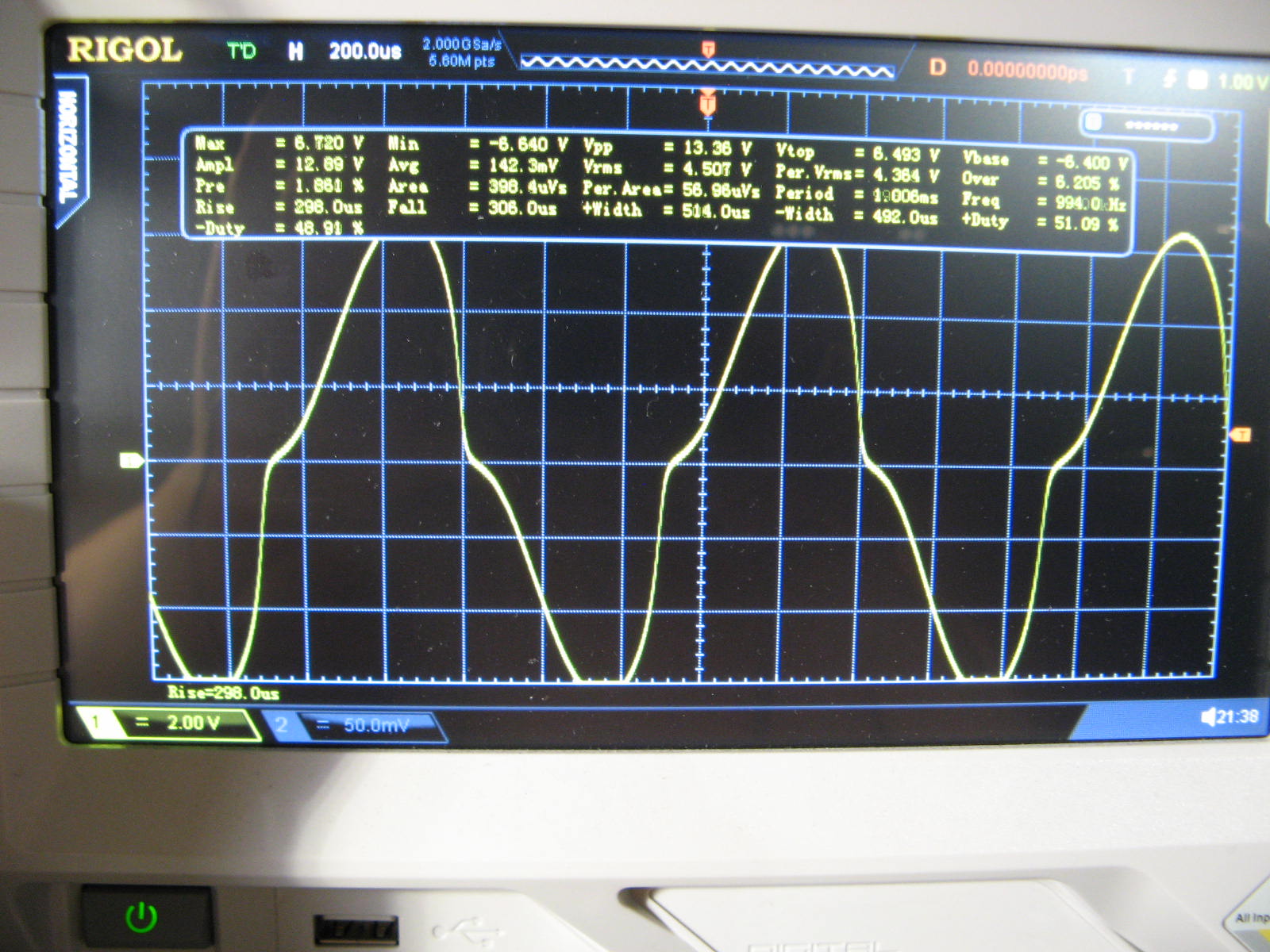 (foto 50) Se applico 4 Vrms, la deformazione dovuta alla saturazione si nota maggiormente, cosa che diventa evidentissimo (foto 60) a 4,5 Vrms.