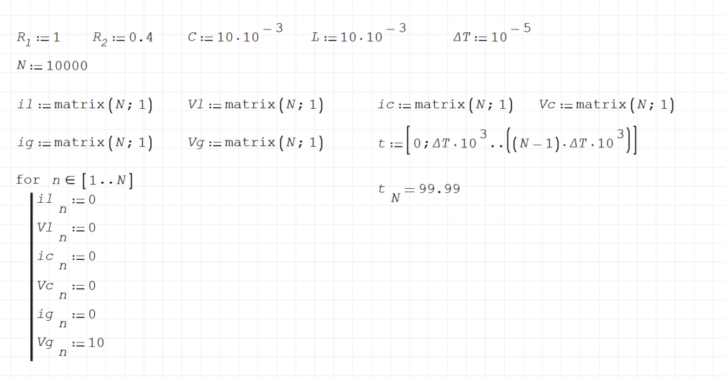 Vc = Vc +IC*(dtempo/C);// tensione ai capi condensatore come integrale della corrente