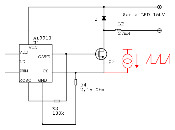 Il generatore di corrente dovrà essere sincronizzato con la PWM del MOSFET, e per implementarne un'equivalente dovrebbero essere sufficienti un OPAMP, qualche transistor e qualche resistenza.