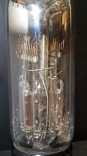 Oggi sono andato a Vimercate a visitare una eccellente collezione privata di radio e apparecchiature legate al mondo della radio, con pezzi storici provenienti dai laboratori di Guglielmo Marconi e di Maria Curie, tanto per citare alcuni nomi. C'erano più di 1200 pezzi, tra cui molte valvole, e una curiosissima valvola che è stata il prototipo del circuito integrato. Infatti l'ampolla principale (senza getter) contiene 4 piccole valvole (grosse come una fialetta), resistori e condensatori. Per avere una radio completa bastava l'alimentatore, l'antenna, l'altoparlante e questa unica supervalvola.