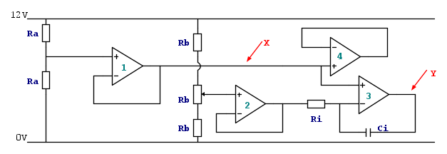 - l'amplificatore 2 svolge la stessa funzione di 1 per quello che è il tuo segnale in ingresso all'integratore