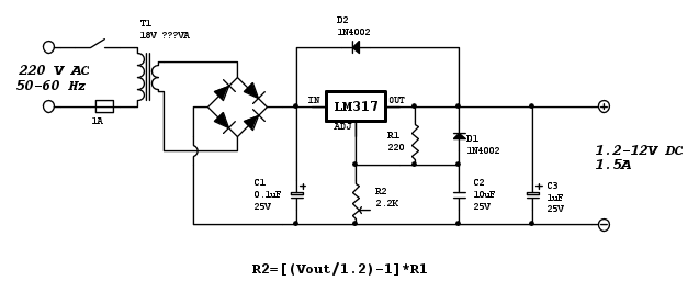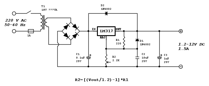 Ebbene... ecco uno schema di un alimentatore variabile 1,2-12V