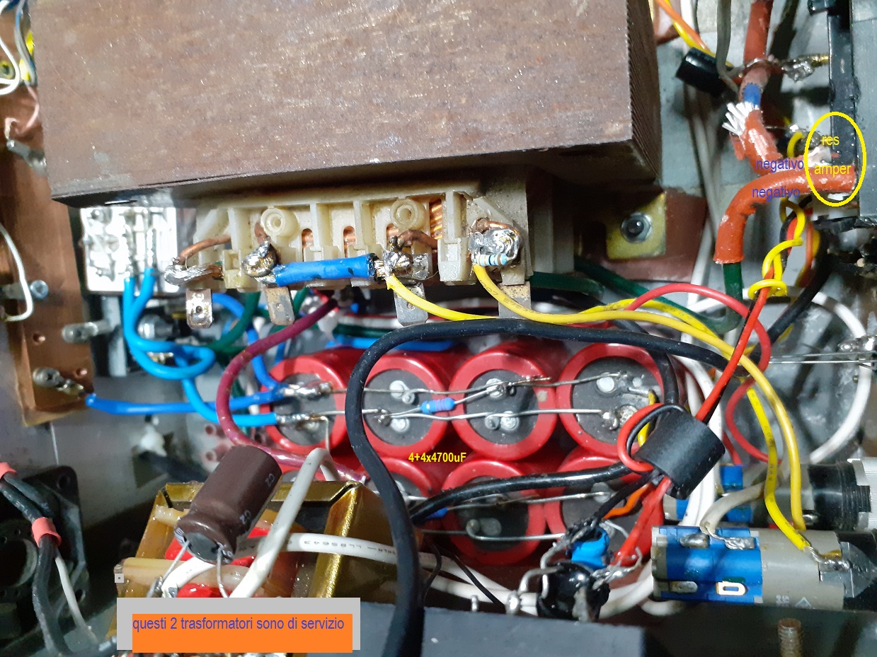 Poi c'è un trasformatorino in più per alimentare il voltmetro e amperometro elettronico, oltre a quello di servizio.