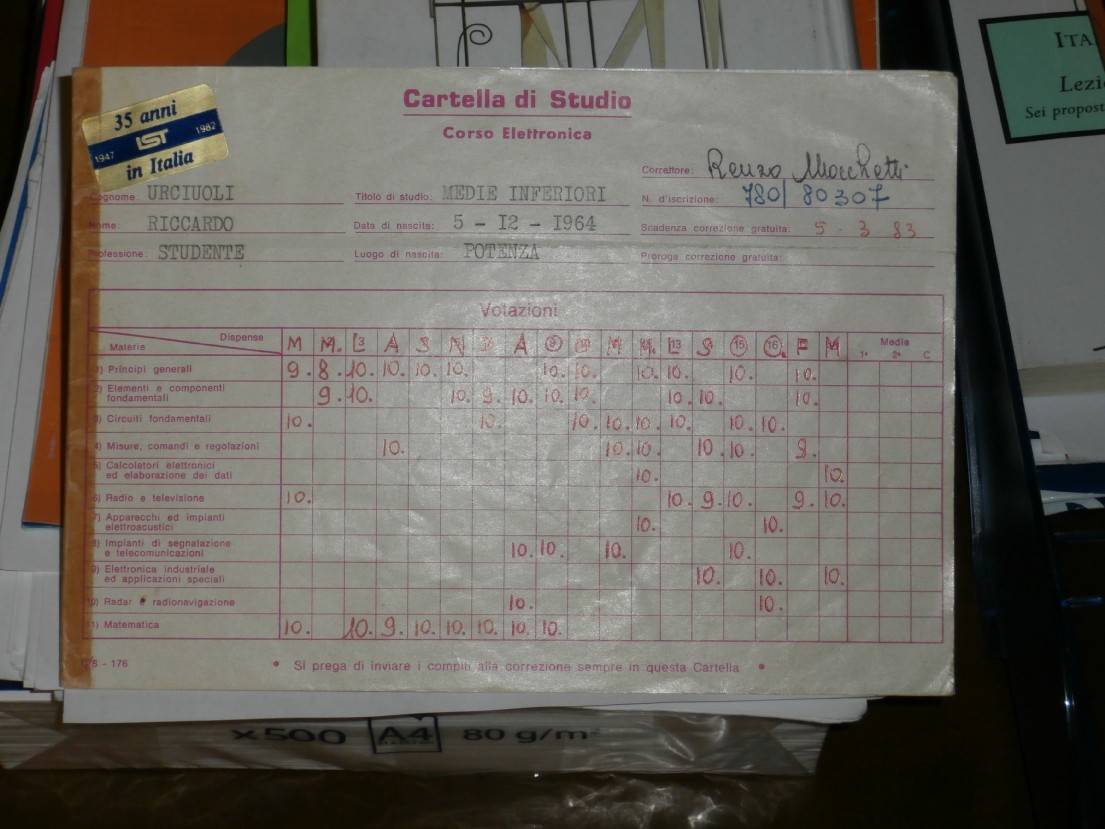 Non so le altre scuole per corrispondenza ma questa mi piacque molto, c'erano anche degli esercizi da fare e spedire! Ecco la pagellina che il correttore mi rispediva indietro ogni volta