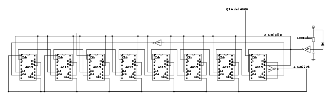 perché invece i collegamenti con i Ck non vanno bene? tutti i Ck ovvero i Cka e i Ckb dei CD4015 non devono essere collegati tutti insieme?escluso ovviamente l'ultimo CD4015 in cui l'impostazione è diversa?