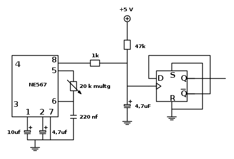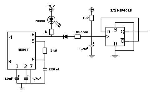Ciao Davidd:))) oggi ho fatto la prova a di mettere un diodo 1N4148 tra I'uscita del 567 e il pin 3 del 4013 (Catodo verdo il pin 3) e la situzione sembra migliorata...qualche volta non è molto preciso,ma riesce comunque a far passare da stato 1 e stato 0 il Pin 1 del 4013...
