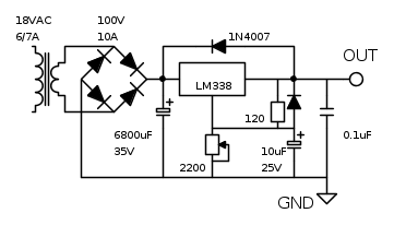Si Claudio pero' , in teoria, dentro a quel coso potrebbe esserci un circuito simile a quello postato con in piu' una sola resistenza tra adj ed il potenziometro (visto che il range e 10/18V); in questo caso, basterebbe cortocircuitarla ed eventualmente cambiarne un'altra.