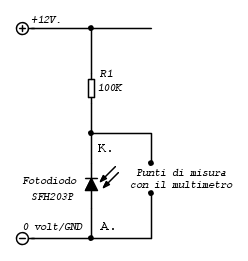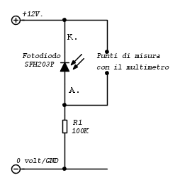 Lo schema in allegato è corretto per provare il fotodiodo? e misurare i valori?
