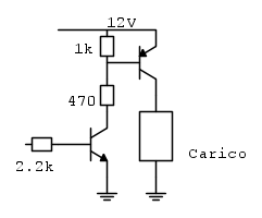 Questo fino a qualche centinaio di milliampere potrebbe farcela. Non e` possibile andare con la tensione di uscita di una porta logica a comandare un pnp (o un PMOS) appesi al positivo di 12V, ci vuole un transistore di interfacciamento, o un driver...