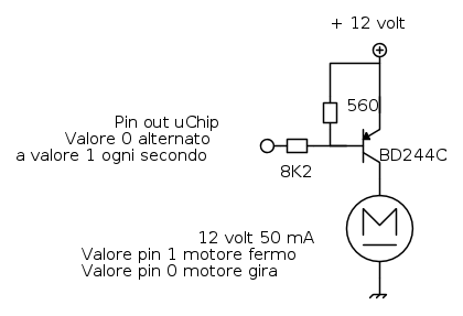 Allora posta DIRETTAMENTE il listato in fidocad. Del png non se ne fa nulla nessuno. In ogni caso il tuo circuito ha parecchie cose da rivedere - prima di tutto il transistor che è meglio mettere sotto (cioè usare un NPN) che non sopra il carico. Se proprio non se ne può fare a meno (perché magari la carcassa è a massa) occorre pilotare il PNP con un altro transistor NPN in modo che l'eventuale differenza tra le tensioni di alimentazione della logica e quella del motore non stravolga il funzionamento del circuito (come invece può fare ora se le due cose sono alimentate a tensioni diverse).