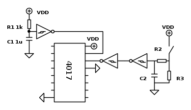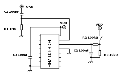 C3 da 100 nF è un condensatore che va sempre inserito tra i piedini di alimentazione di ogni integrato CMOS.