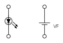 Il LED, come tutti i diodi, quando è in conduzione, può essere "visto" come una batteria avente il valore della tensione diretta