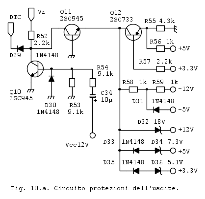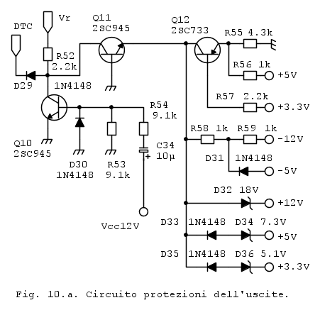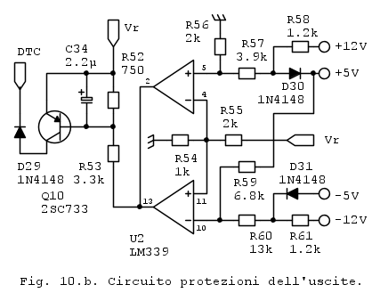 Fig. 10. a. mostra uno schema della protezione dell'uscite, relativamente completa, ma non molto precisa.