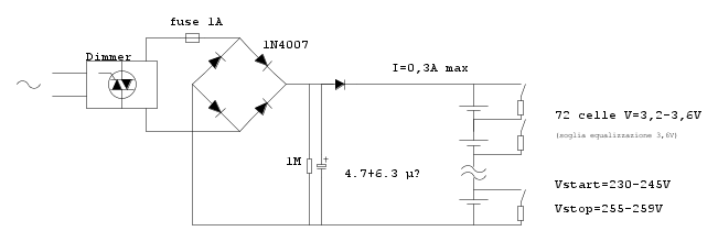 Alimentatore 220 V AC -> 260V DC per bilanciamento batteria