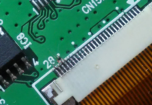 Niente da fare, ho provato con un flex cable nuovo ma non se ne parla di fissarlo a pressione nello slot del display perché rischierei di rompere il vetro. Ed è anche impossibile incollare i contatti del flex direttamente sul display visto che questo non è piano ma a gradini,