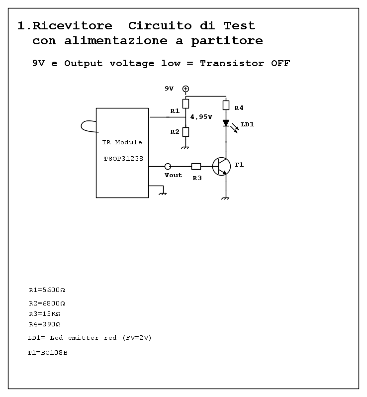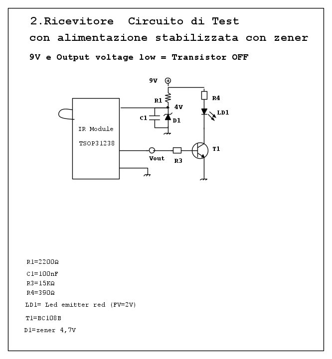 Per i test di Elfo ho usato i due circuiti in basso come ricevitore uno con alimnetazione a partitore e uno con alimentazione stabilizzata con zener ed ho integrato con divese espeozioni (ombra, sole, nuvoloso ect)