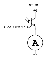 Mettiti in pieno sole e misura la corrente nel fototransistor con il circuito qui sotto