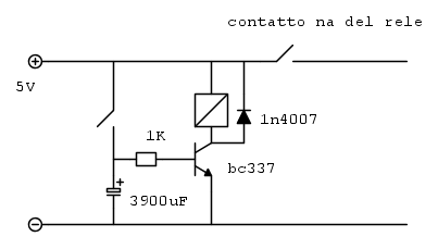 edit-- visto che sei stato cosi disponibile posso chiederti di darmi lo stesso schema ma invece della 220 con alimentazione 5 v 2A ? il rele che deve comandare è un SMI-05VDC-SL-2C e assorbe 144 mA a 35 ohm