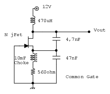 per poi verificare che all' innesco, sul Gate, ad ogni oscillazione la tensione, faccia aumentare quella precedente sul Source (guadagno maggiore di uno) fino a che il circuito non si stabilizzerà con un guadagno unitario intervenendo le saturazioni