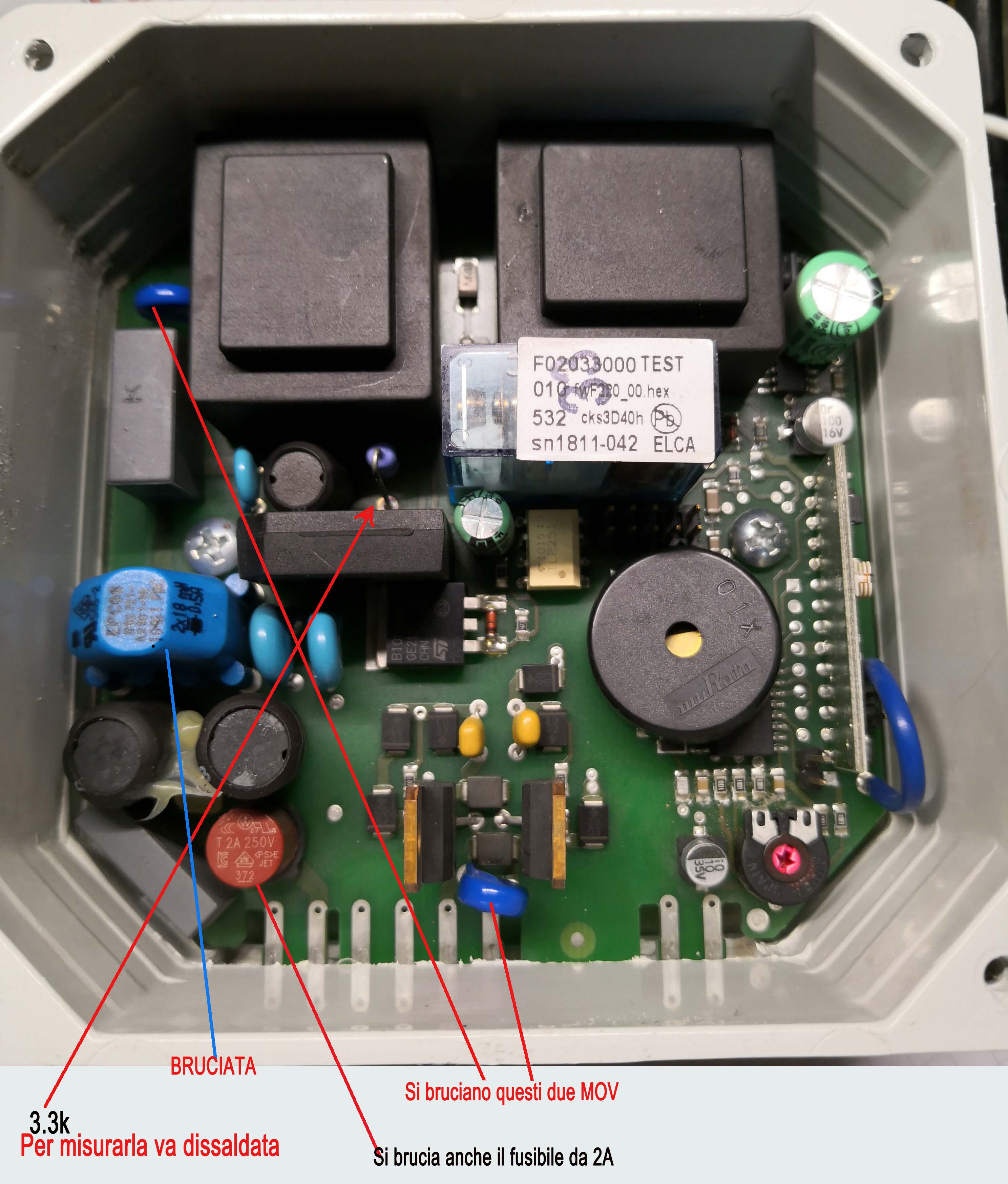 La ventola l'ho testata e va benissimo ma ha un condensatore a bordo, più tardi cerco di testarlo per vedere se e buono, anche se credo lo sia, se no la ventola darebbe problemi, non so se lo sfiammamento non fa si che l'avvolgimento non crei dei picchi di tensione e per questo si brucia anche il MOV