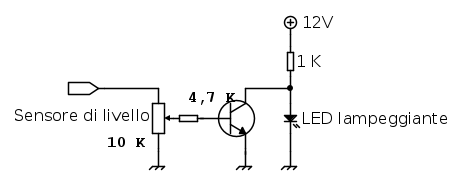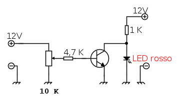 Eventualmente, se la corrente di base fosse troppo elevata, aumentare quella da 4,7K a 10K