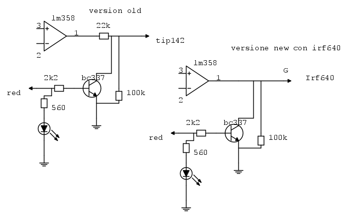 Nel nuovo schema, rimetterei il resistore da 22K (forse meglio ridurlo a 4,7k) in serie all'uscita 1 del lm358.