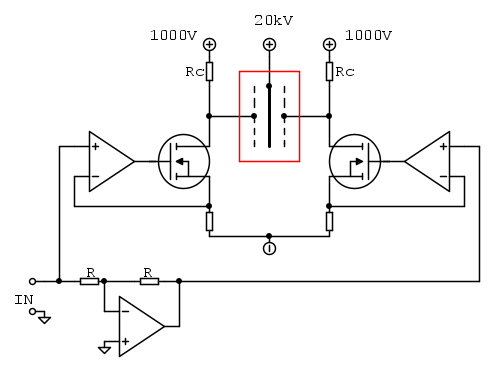 Avrei in mente di provare a realizzare un altoparlante elettrostatico, in pratica pilotato da un circuito basato su questo schema di principio