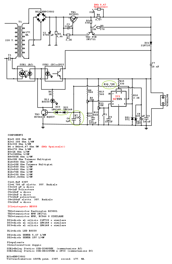 Schema definitivo Carica batterie riprogettato con Relay SSR, isteresi e Ne555.